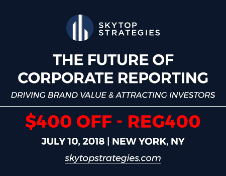 *New Clip* Louis Coppola from G&A Institute Goes In Depth on How to Improve ESG Performance _________________________________________ G&A Institute Sustainability Update™ The “100 Best Corporate Citizens 2018” Roster -– Published by CR Magazine _________________________________________ G&A’s To The Point! is a businesss intelligence web-platform resource. This management briefing service offers timely insights and perspectives on Corporate Sustainability, Responsibility & Citizenship. Click here to request a trial subscription. Below are links to a sampling of three recent briefs: ABOUT THOSE CORPORATE EMPLOYEE PENSION PLANS –The Focus is Increasing on the Shortfalls…and Remedies _________________________________________ FLASH REPORT: 85% of S&P 500 Index® Companies Publish Sustainability Reports in 2017