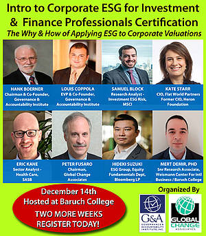 Governance & Accountability Instiute is the “Sustainability Headquarters™” for clients in the corporate, investment, public and social sectors. Based in New York, G&A is a for-profit consulting organization providing a range of value-added strategies, services and resources related to ESG & sustainability to clients in the corporate and capital markets communities.The G&A services portfolio includes: Sustainability Reporting; Assistance with GRI Report Alignment Services; GRI G4 Reporting; Gap Analysis; Materiality Assessments & Strategies; Stakeholder Engagement; Peer Benchmarking; Critical Issues Management; Coaching / Training; Stakeholder Report Review; Sustainability / Responsibility Report Announcement Services; Sustainability Recognitions/Awards; Public Relations Programs; Communications & Marketing; Event / Speaking Opportunities; Writing & Editing Assistance; Investor Data Review & Enhancement; Third Party Investor Data Providers Assistance; ESG Investor Engagement; Shareholder List Profiling; Investor Roadshows; Investor Perception Surveys.